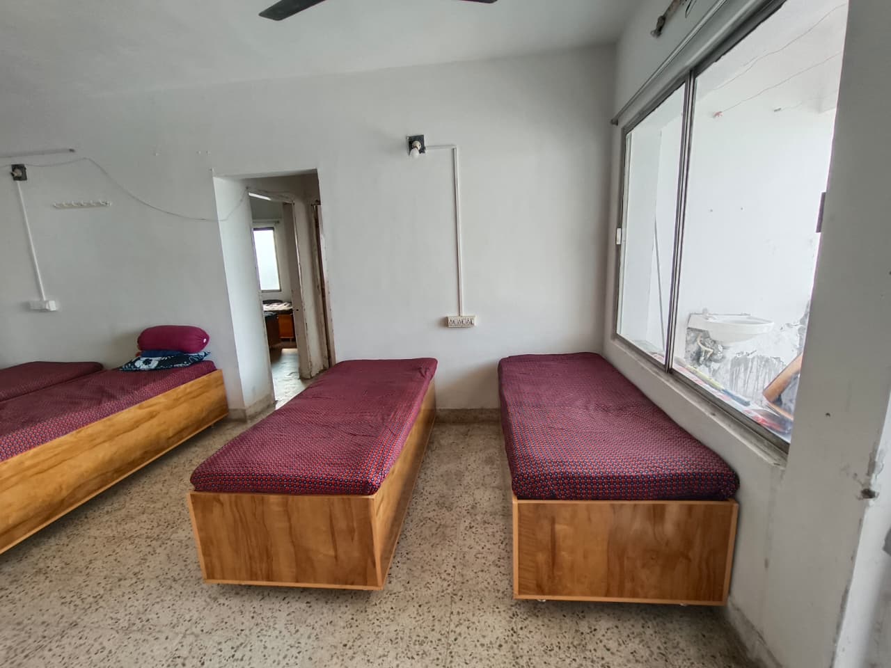 Our 3-sharing rooms are designed to balance comfort, space efficiency, and affordability. Each resident gets: